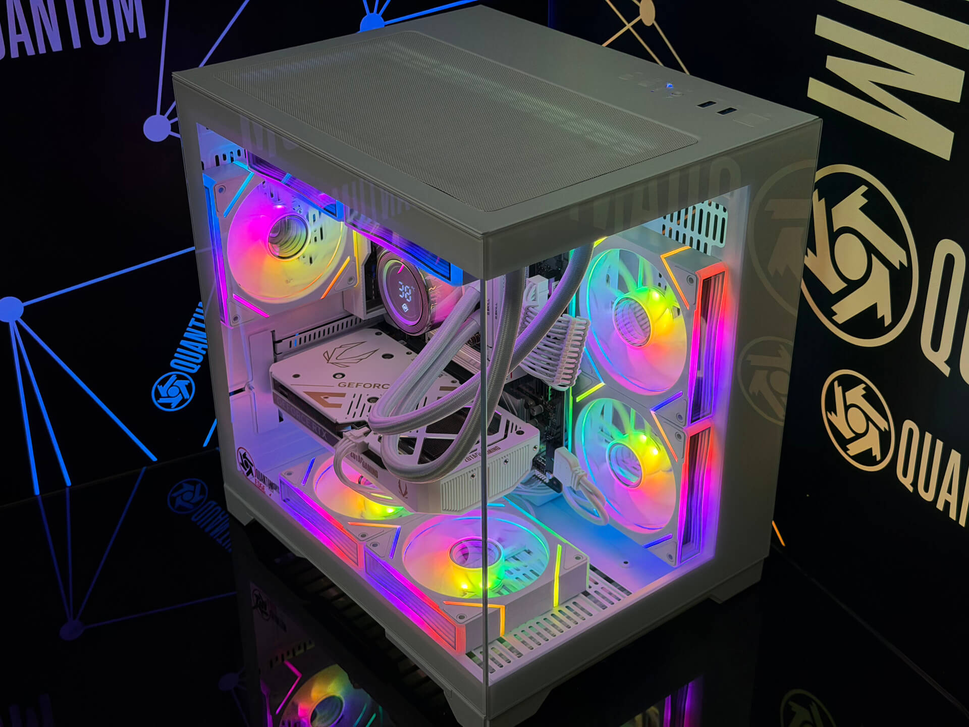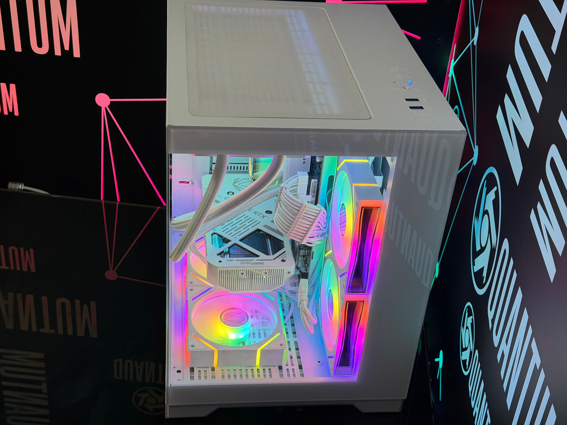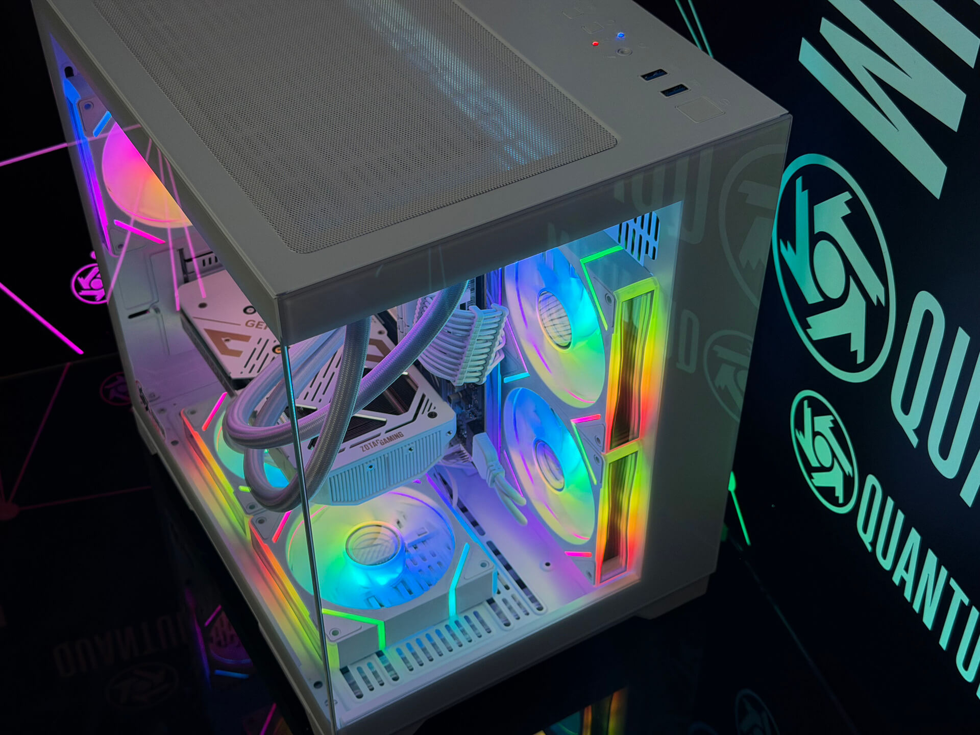 🖥️ Корпус:1SТРLАYЕR Меgаviеw МV5-Т, белый — панорамное стекло демонстрирует сборку, а конструкция упрощает доступ к компонентам