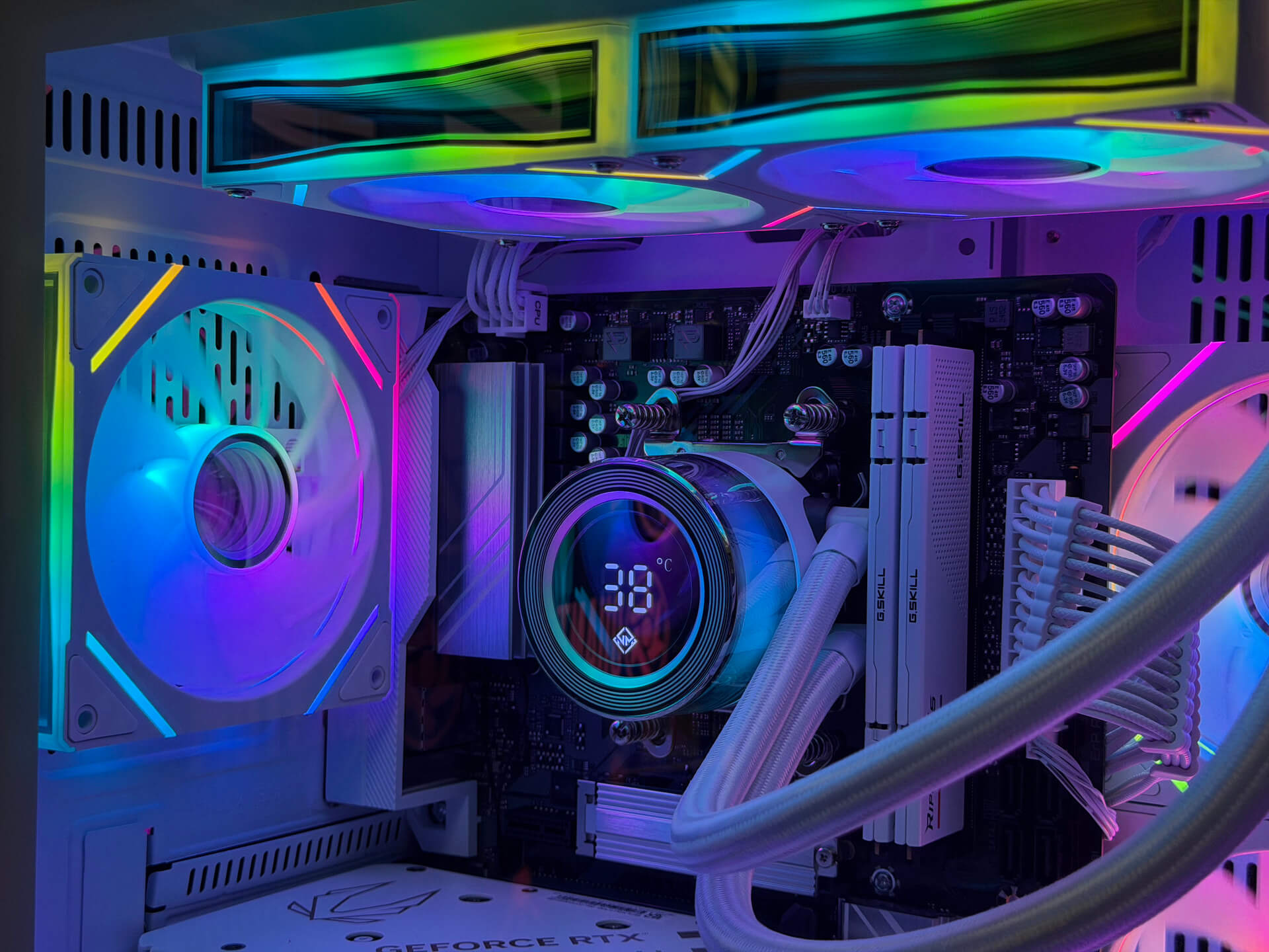 ❄️ Охлаждение:СЖО 240 мм в белом корпусе с LСD дисплеем и надёжной помпой для стабильного охлаждения